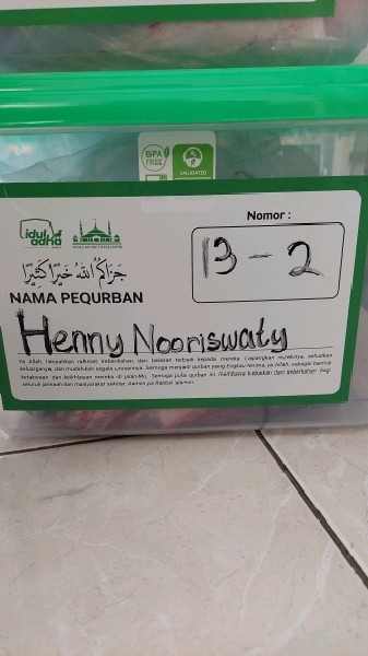 | 155 | Fitri Asral | Sapi | S12S | 5 | Has dalam 2 Kg, iga 1 Kg, hati | |