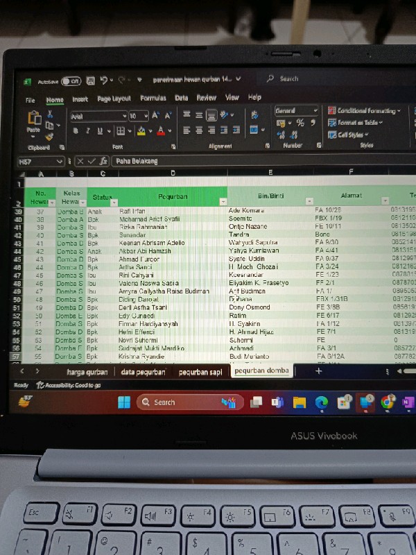 | 199 | Desvita Wulandari | Sapi | S19S | 6 | Daging 2 Kg, sengkel 1 Kg | |