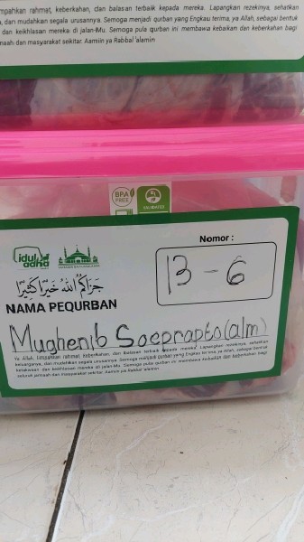 | 8 | Gilang Ramadhan | Sapi | S13C | 7 | Daging + kepala | |