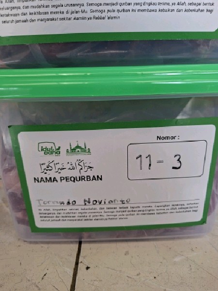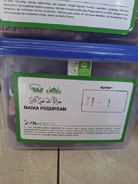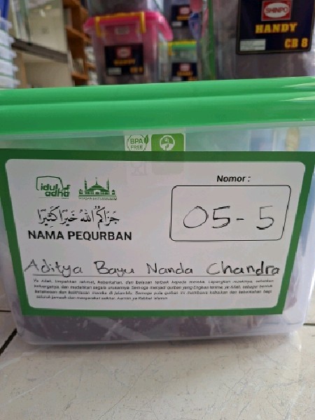 | 126 | Abdul Kholik | Sapi | S05A | 6 | Daging 2 Kg, Iga 1 Kg, ekor | |