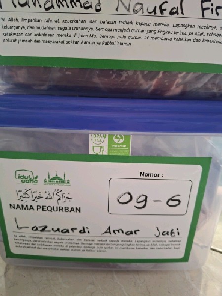 | 140 | Muhammad Naufal Firdaus Lazuardi | Sapi | S09B | 5 | Daging Paha | |